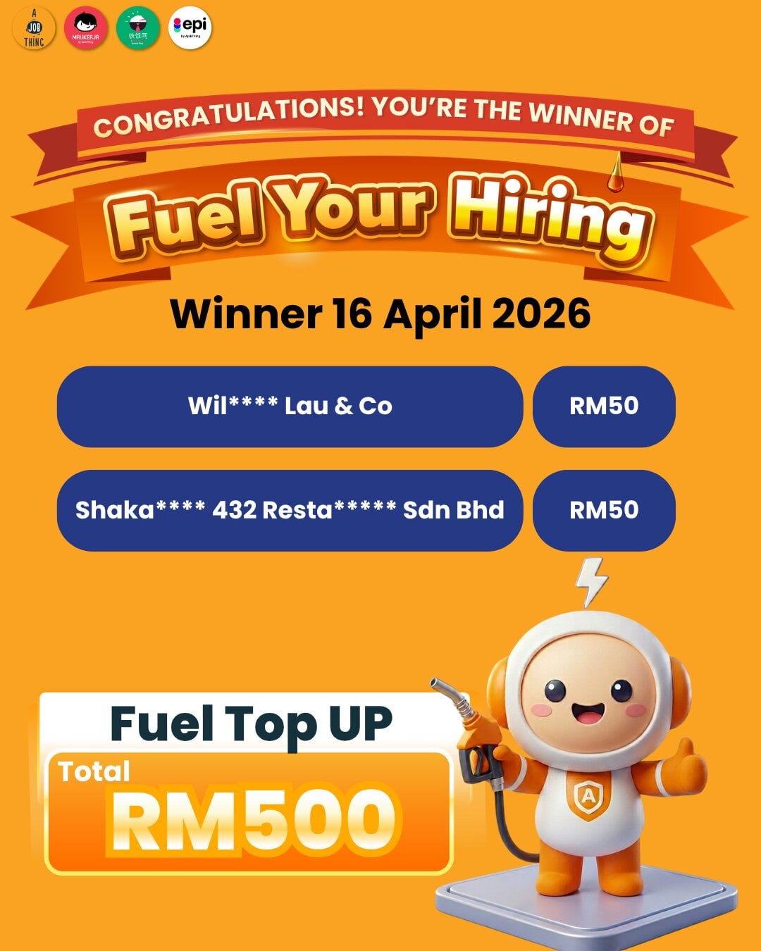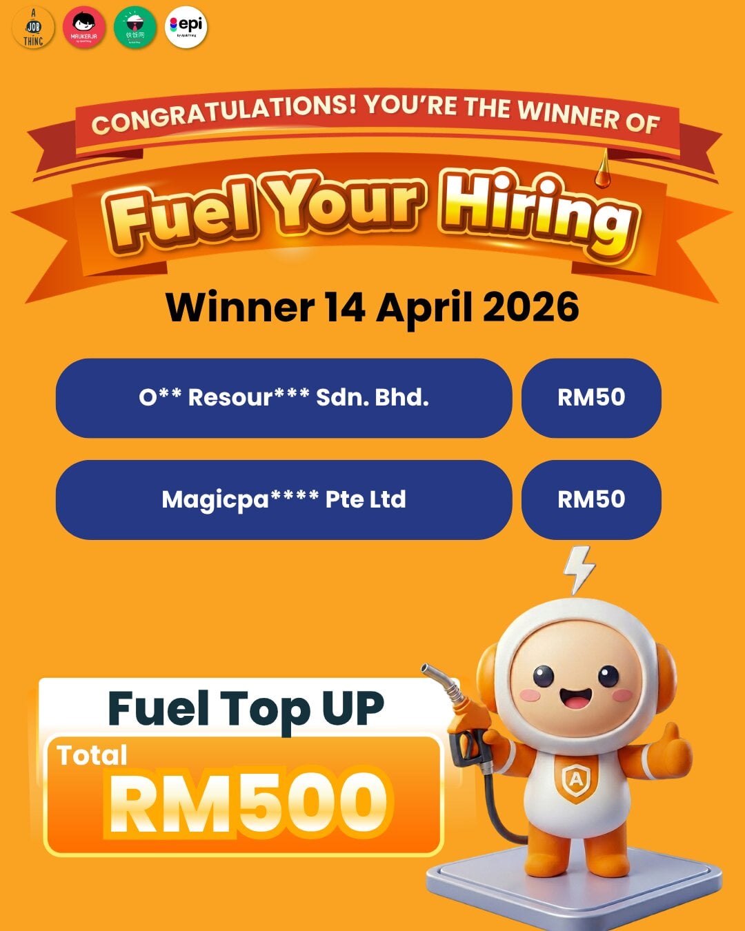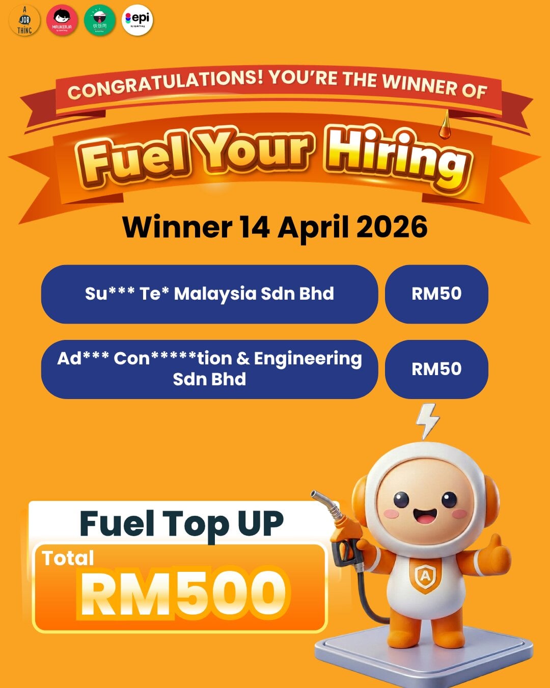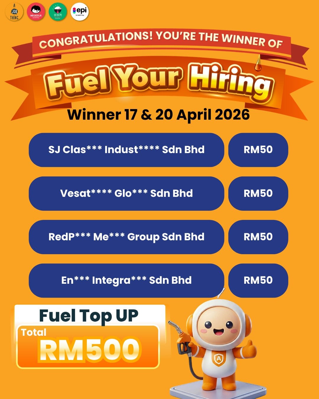 10 Companies Got RM50 Fuel Each, Total RM500 Giveaway by AJobThing