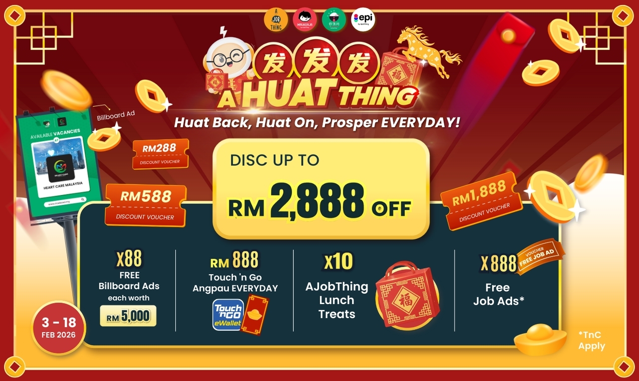 Hire NowIn celebration of Chinese New Year, AJobThing introduces another festive employer campaign — A Huat Thing, running from 3 to 18 February 2026.