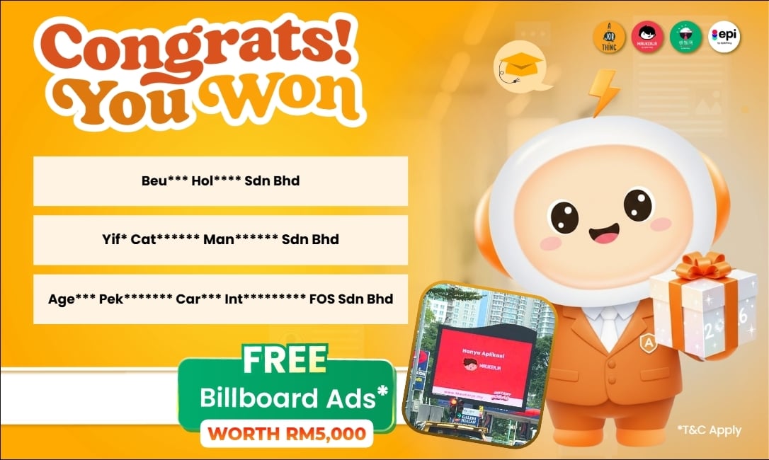 3 Companies Won a Free Billboard Ads Worth RM5,000 from AJobThing