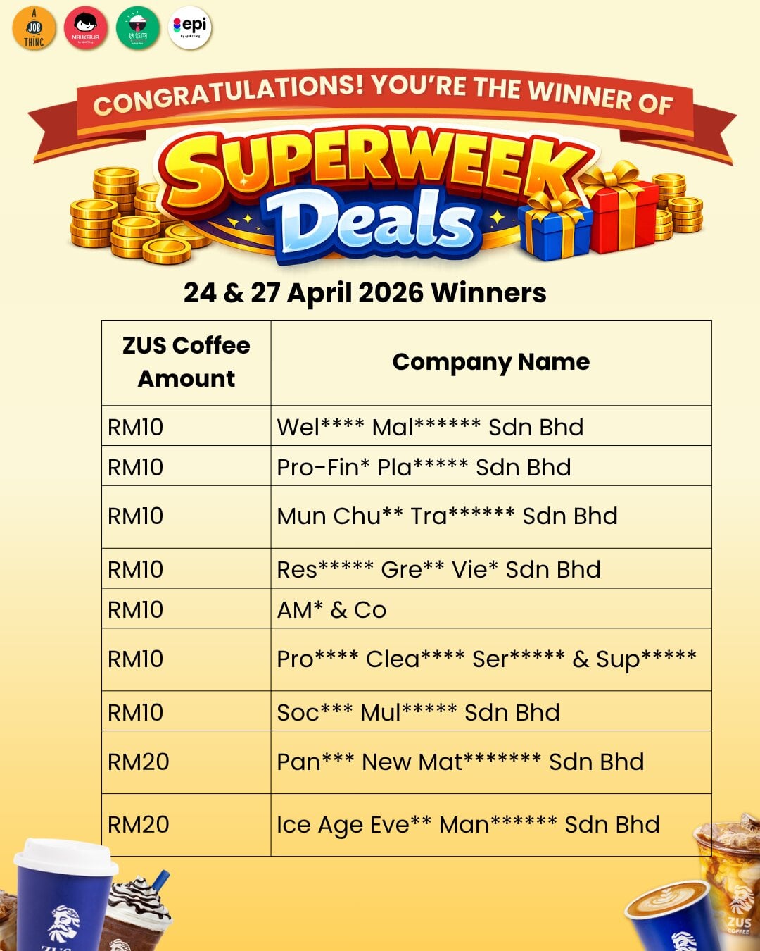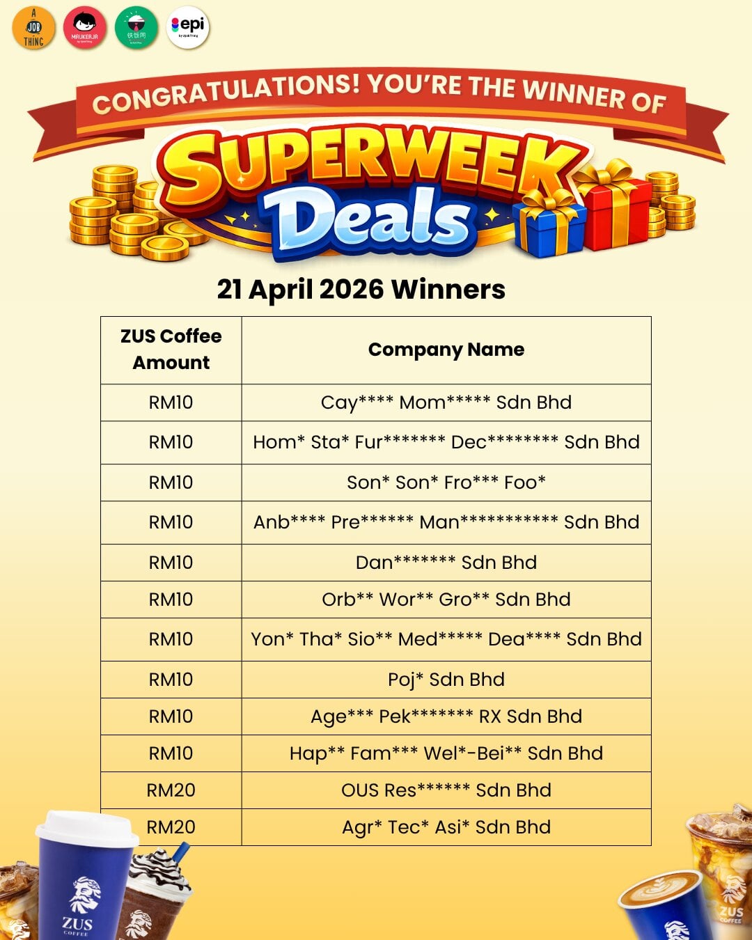 34 HRs Win ZUS Coffee Vouchers in AJobThing Super Week Deals Campaign
