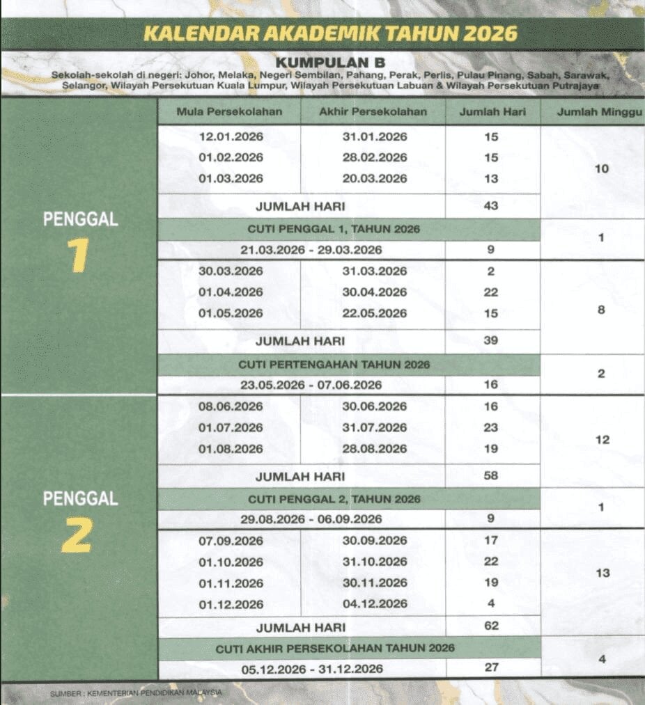 Below is a structured overview of the Sarawak School Calendar 2026 (Group B):