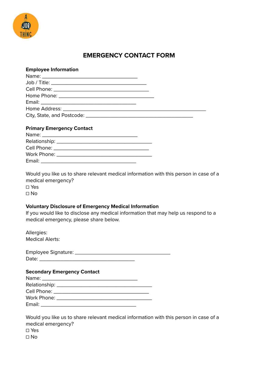 Even employees who work from home should complete the form, as emergencies can still happen during working hours.