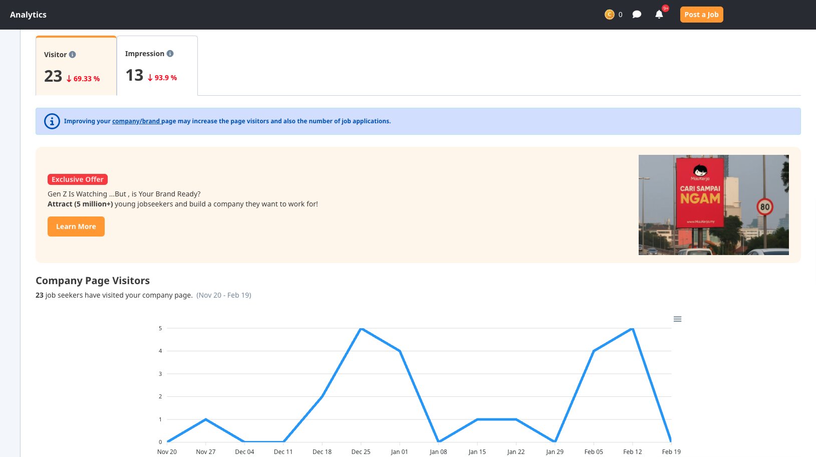 View company page visits and job ad views