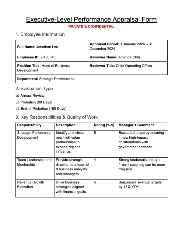 In Malaysian companies, appraisal forms are a key part of HR processes such as salary reviews, promotions, bonus decisions, and staff development planning.