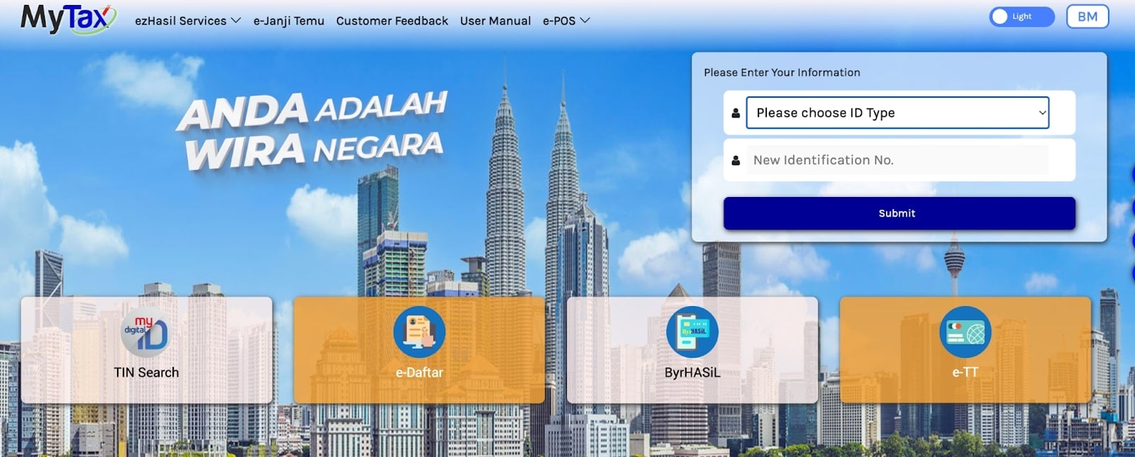 Log in using the partnership’s e-Filing ID / TIN and password, or via MyKad login if linked.