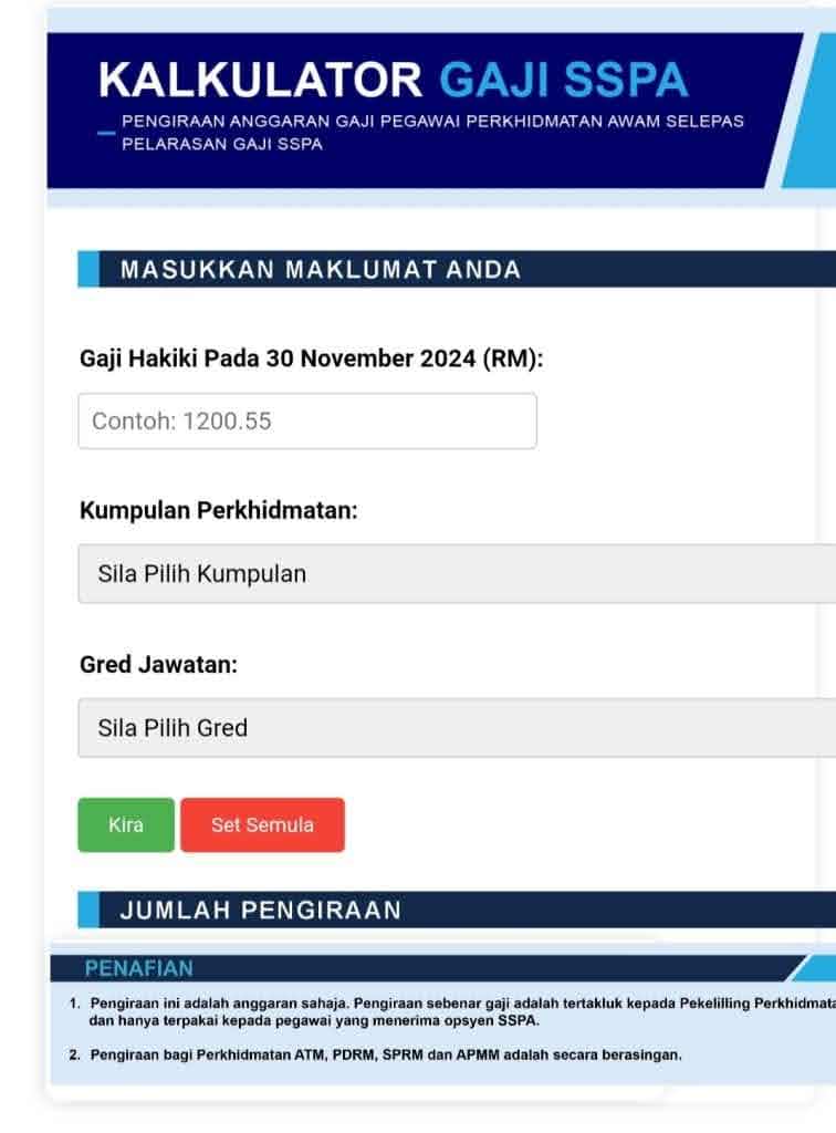 To support transparency, the government provides an official calculator to help penjawat awam estimate their adjusted salaries under SSPA.