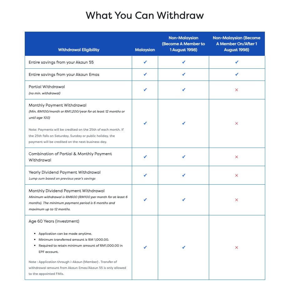 Hire NowWhen employees reach a certain age, their KWSP account and withdrawal options will change.