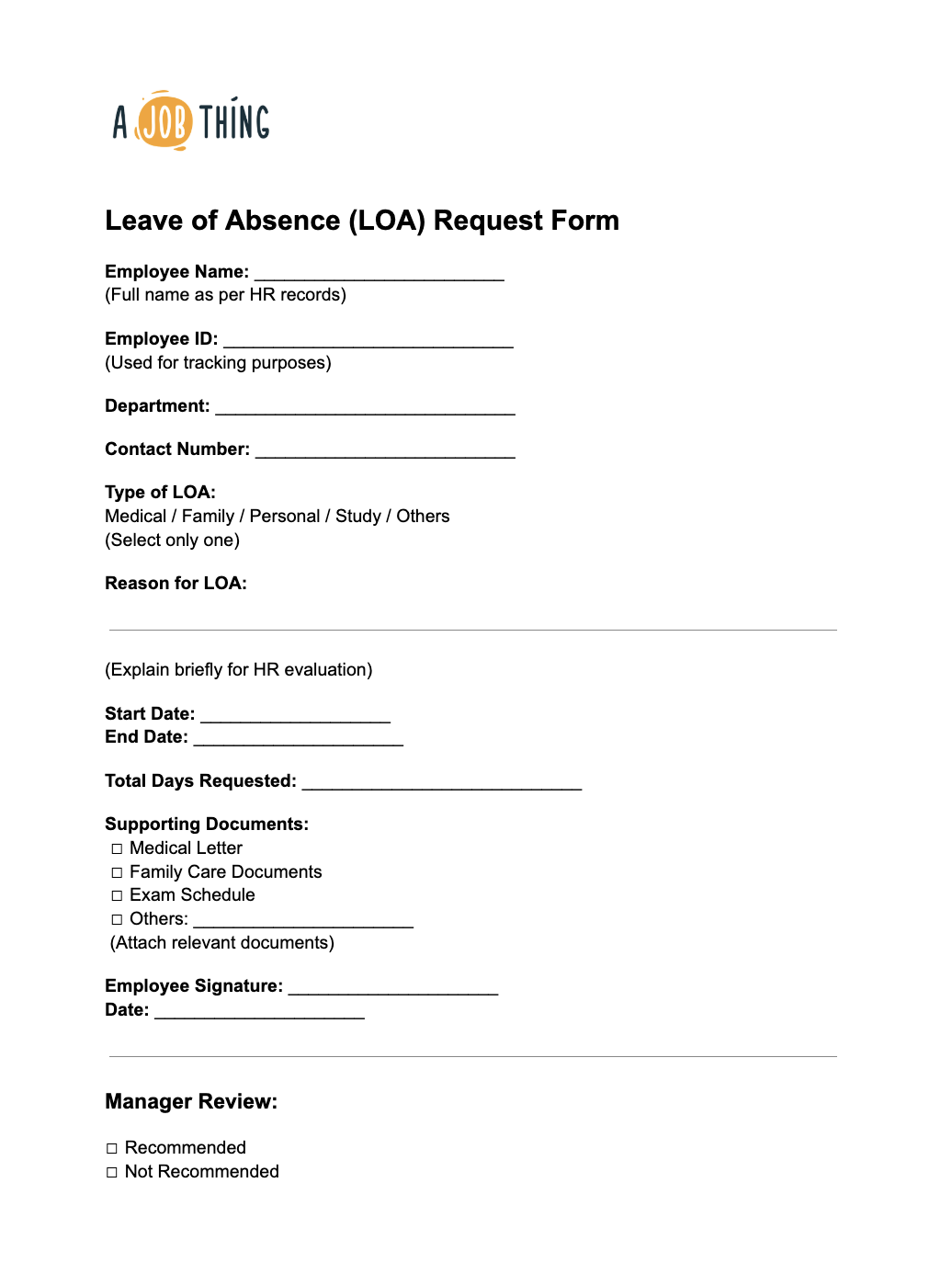 Hire NowA Leave of Absence, or LOA, is an extended period of leave that employees can take when they need more time off than what their standard annual, sick, or maternity leave provides. LOA helps employers manage manpower smoothly while allowing employees to handle major life events without feeling pressured to resign.