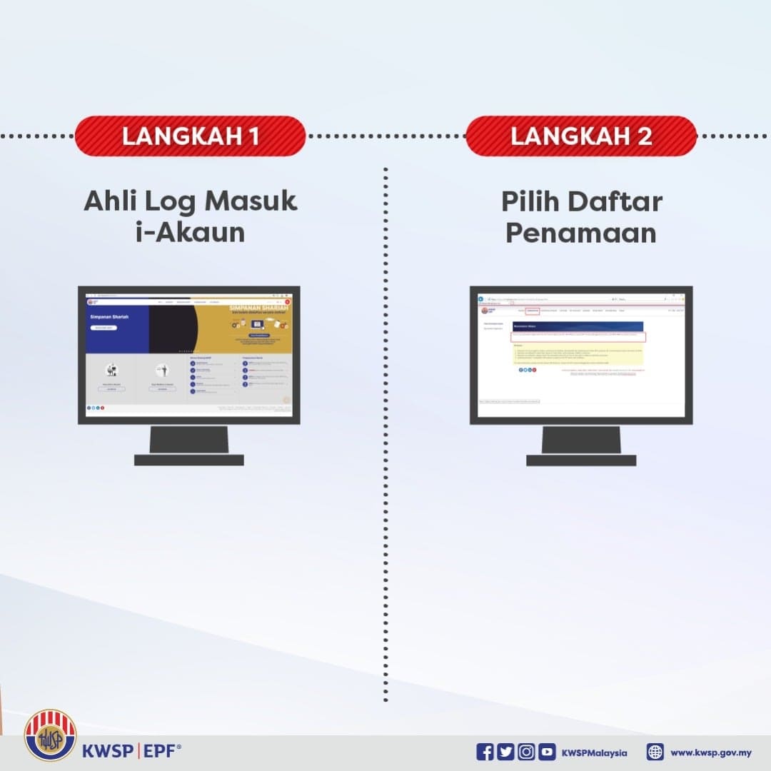 Employees can register or update their nomination through the i-Akaun app or web portal. The usual steps are: