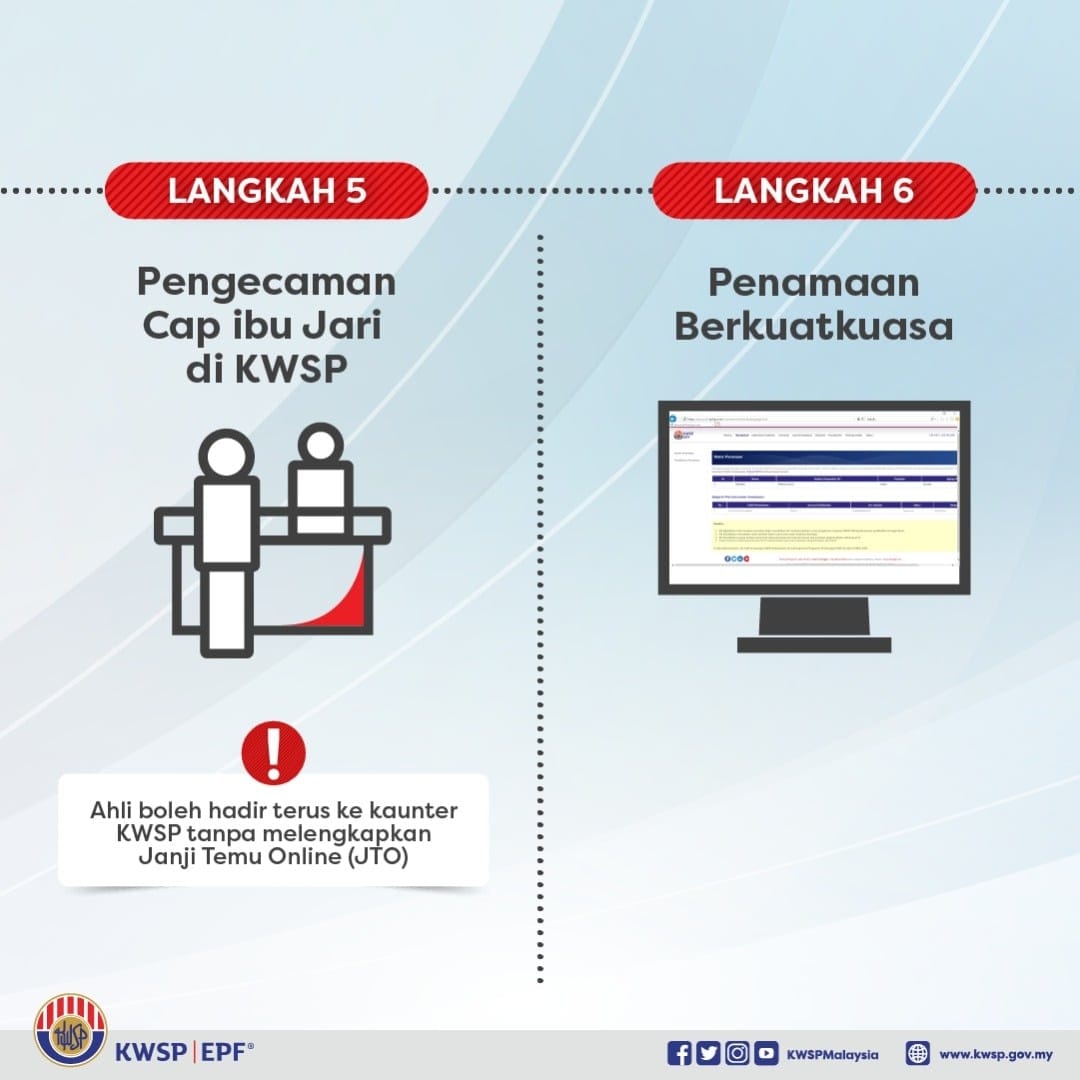 Employees may also register or update their nomination using Form KWSP 4. As an alternative to the online method, the completed form must be submitted in person at any KWSP office for verification using fingerprint authentication (CIJ).