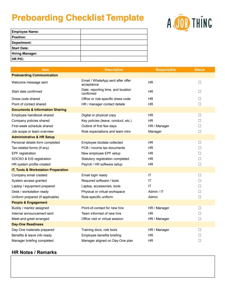 Many HR teams benefit from having a ready-to-use preboarding checklist.