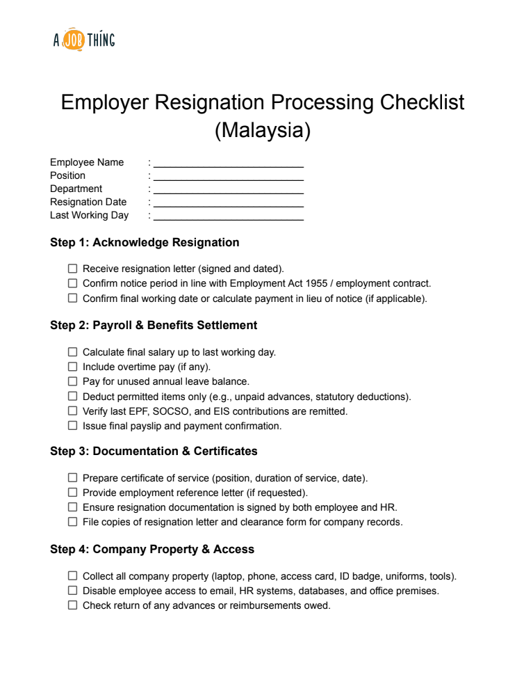 Free Download Employer Resignation Processing Checklist (Malaysia)